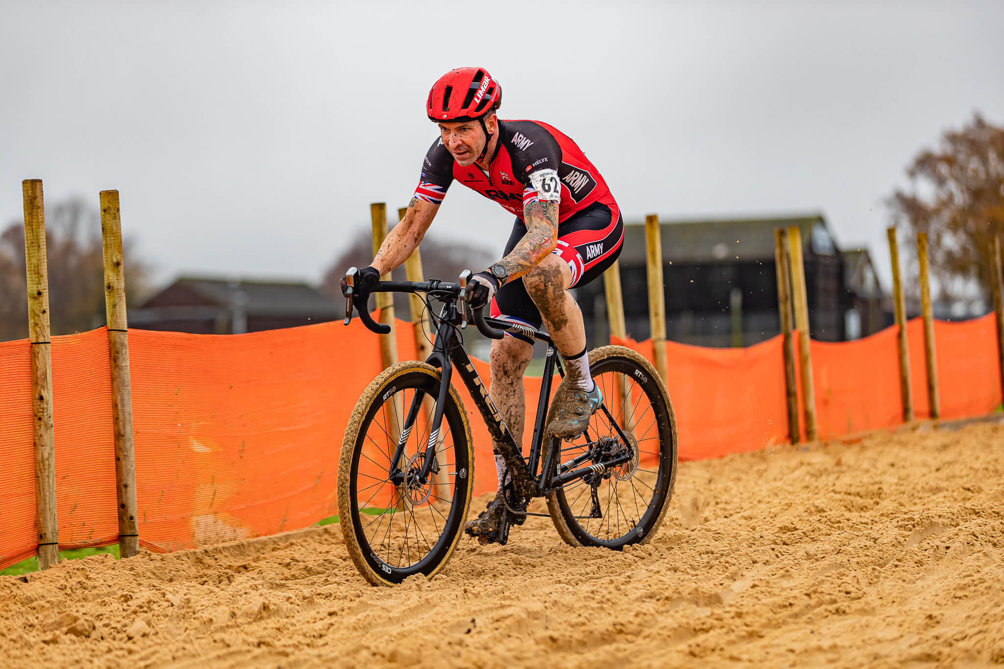Eastern Cross Championships 2022 was again held at Trinity Park, Ipswich on the same course that would hold the World Masters Cyclocross Championship the following weekend. Riders raced around the purpose-built circuit of varying and often tricky terrain, including obstacles, bends, muddy slopes and bridges. Each race comprised of multiple laps of featuring pavement, woodland trails, grass, climbs, and challenging obstacles requiring riders to dismount and carry their bikes.