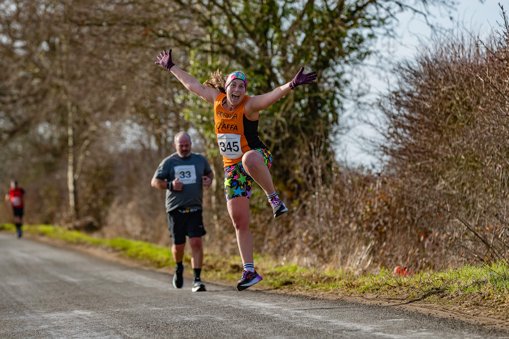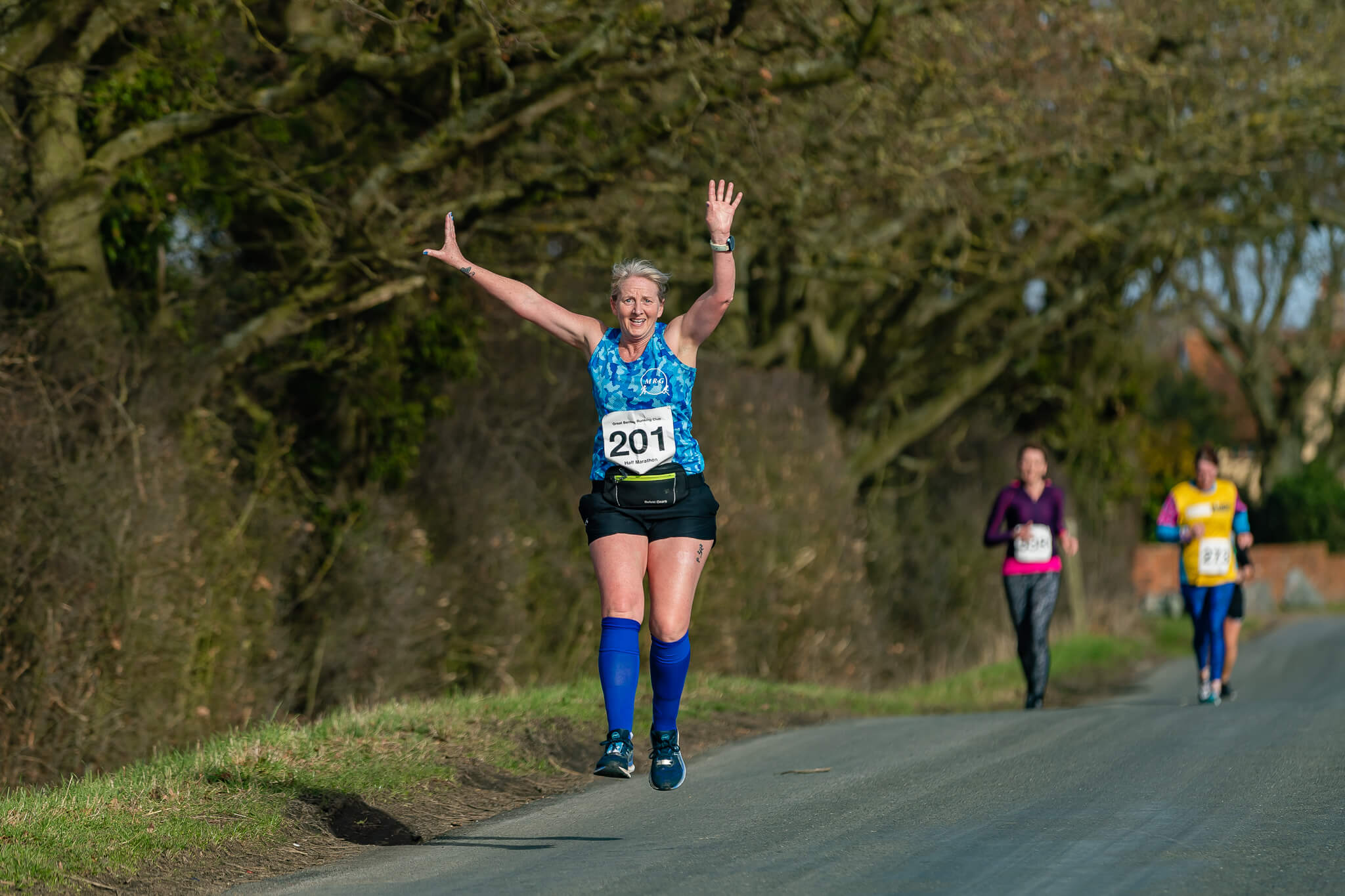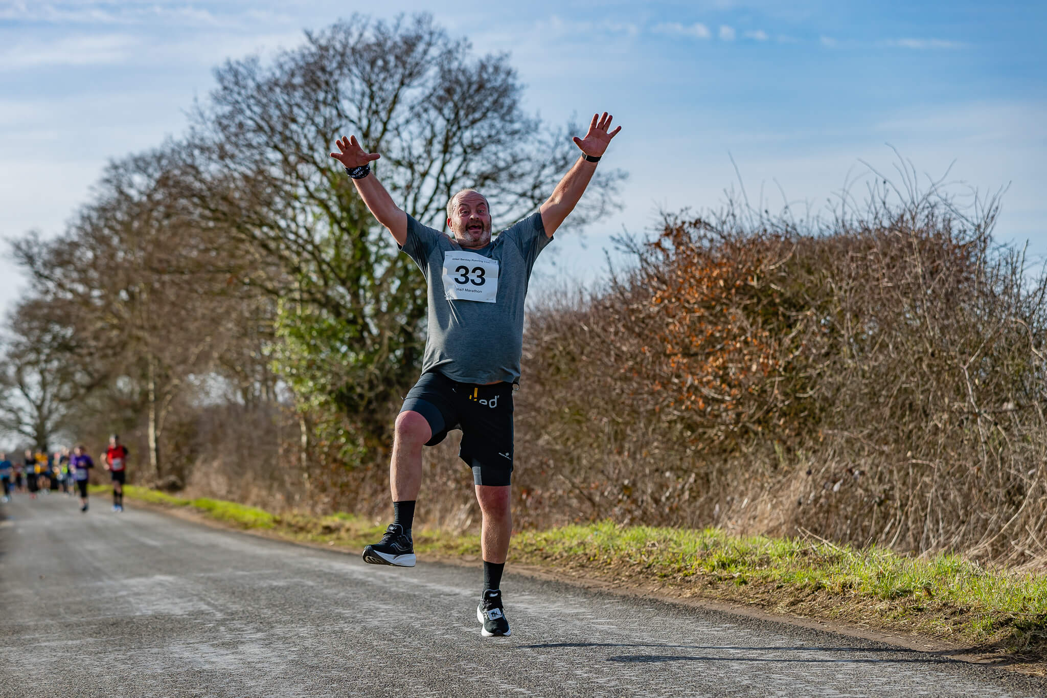 This year I had scouted perfect spot on the course where the runners would pass me 3 times. This enable me to to capture all the runners at 1.5 miles, 4.5 miles and 10.5 miles. After last years rain and cloud this year the weather was looking perfect for getting some fantastic photos. The runners didn’t let me down either with some high flying antics giving me great oppotunities for some dynamic action shots.